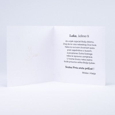 Poklonite svojim gostima jedinstvenu zahvalnicu s ručno izrađenom krunicom Djeteta Isusa. Ova personalizirana zahvalnica savršena je za Pričest i Krizmu, nudeći poseban izraz zahvalnosti i duhovnosti. Svaka zahvalnica dolazi s personaliziranim tekstom, čineći je nezaboravnim poklonom