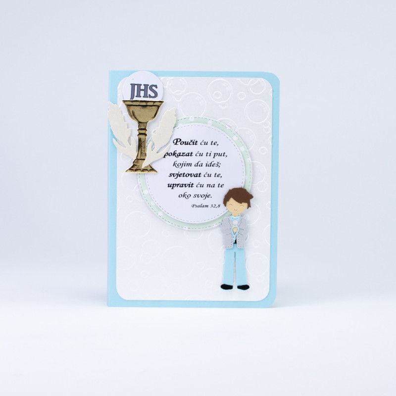 Ručno izrađena čestitka s krunom, savršen poklon za Prvu Pričest ili Svetu Potvrdu.