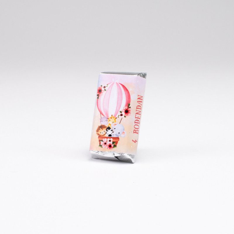 Naša ponuda personaliziranih rođendanskih čokolada donosi neodoljive slastice koje će razveseliti svako dijete na njihovom rođendanu. Svaka čokolada ima težinu od 5g i dolazi u posebno dizajniranom omotu s različitim dječjim motivima.