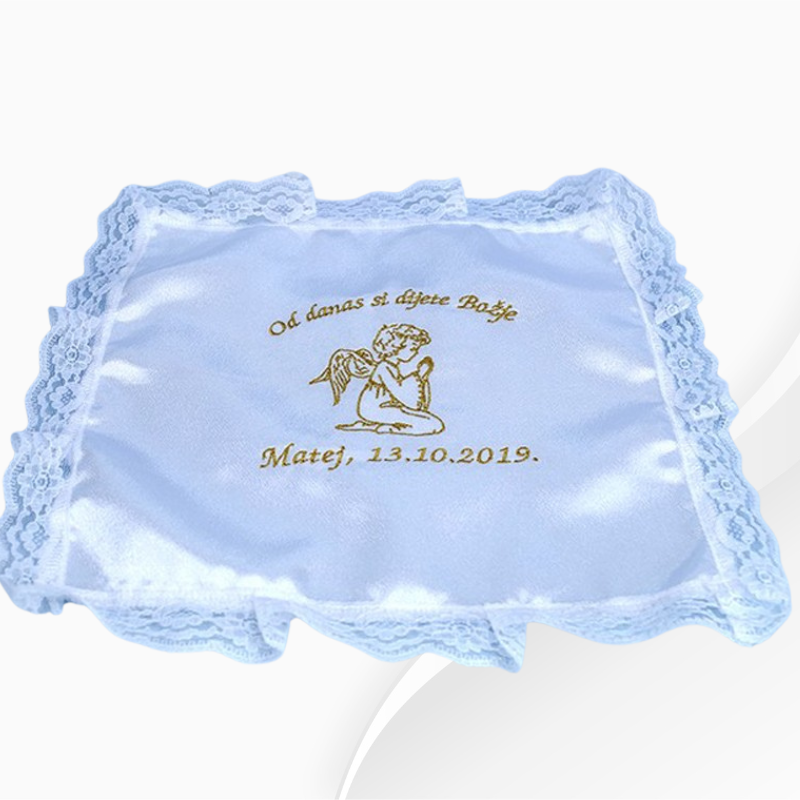 Personalizacija: Svaka maramica je personalizirana imenom djeteta i datumom krštenja, što je čini jedinstvenom i posebnom. Personalizacija dodaje emocionalnu vrijednost, čineći ovu maramicu nezaboravnim darom za roditelje i dijete.