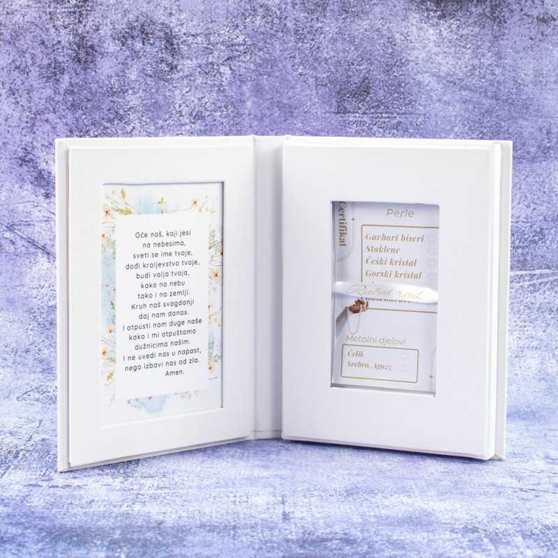 Svojom ljepotom i duhovnom simbolikom, krunica predstavlja spoj elegancije i vjere, idealan za krštenja, pričesti i druge vjerske obrede.