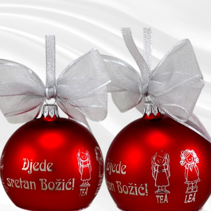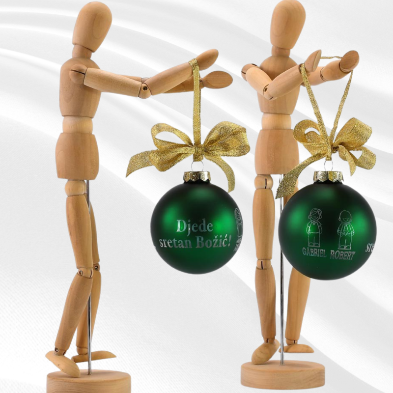 Na kuglici je kružni natpis koji sadrži ime unuka i želju "Djede sretan Božić" ili "Bako sretan Božić" . Ovaj personalizirani ukras unosi toplinu i ljubav u svaki dom tijekom blagdana te je savršen način da izrazite zahvalnost i ljubav prema djedu.