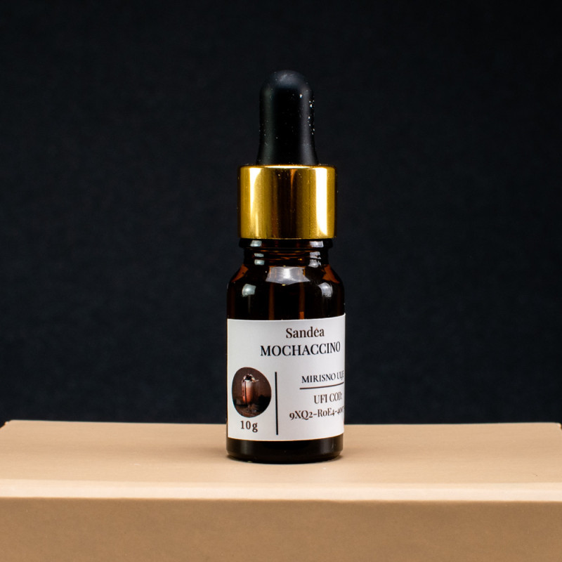 Otkrijte neodoljivu aromu Mochaccino mirisnog ulja, sofisticirane mješavine moćnih mirisnih nota koje donose toplinu i slatkoću u svaki prostor. Gornje note obuhvaćaju moccu i karamelu uz dašak šumskog voća i ruma, dok srce mirisa otkriva bogatu čokoladu, kokos, lješnjak i karamelu. Baza od vanilije i maslaca pruža dubinu i postojanost. Ovo visoko koncentrirano ulje idealno je za izradu svijeća, difuzora, sapuna i parfema. Bez ftalata i parabena, prilagođeno sigurnoj i ugodnoj upotrebi.