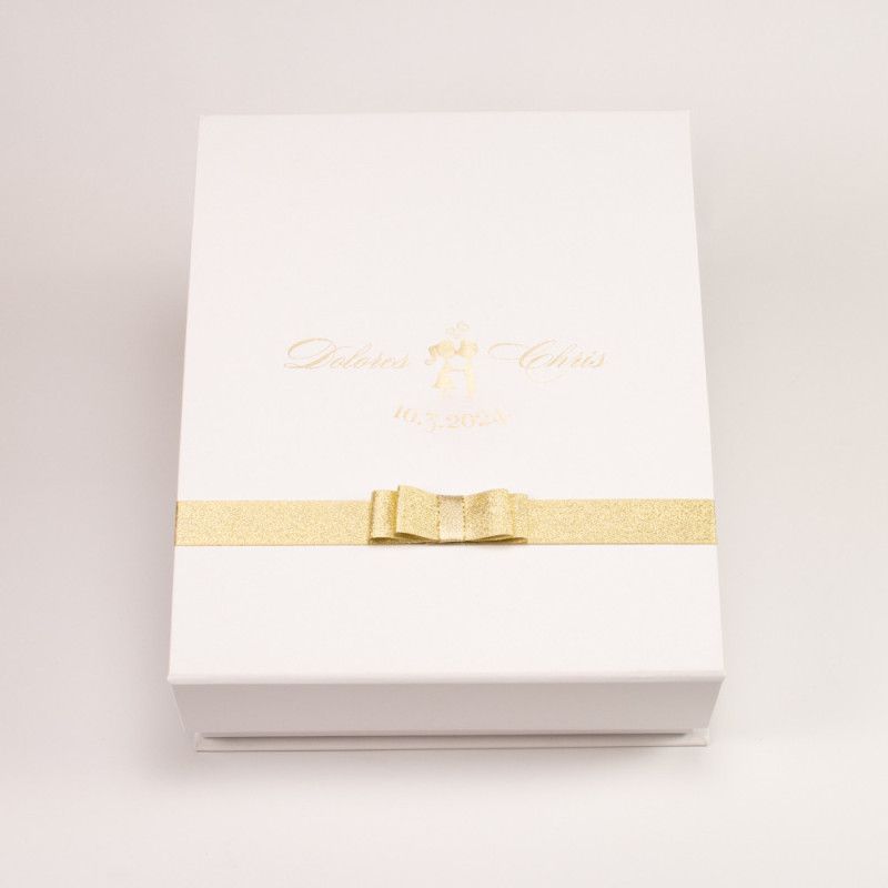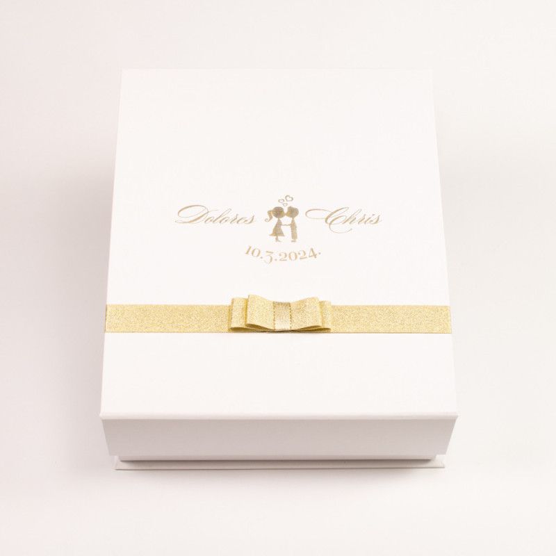Dodatno možete odabrati vino, personalizaciju kutije zlatotiskom, personalizaciju vina graviranjem i ukrasnu traku.