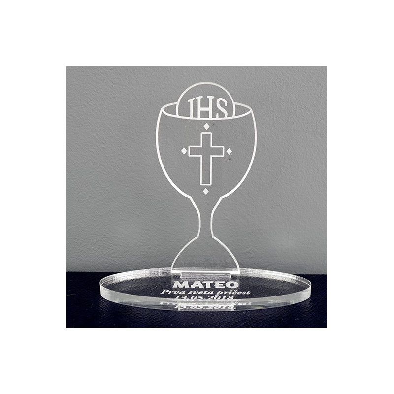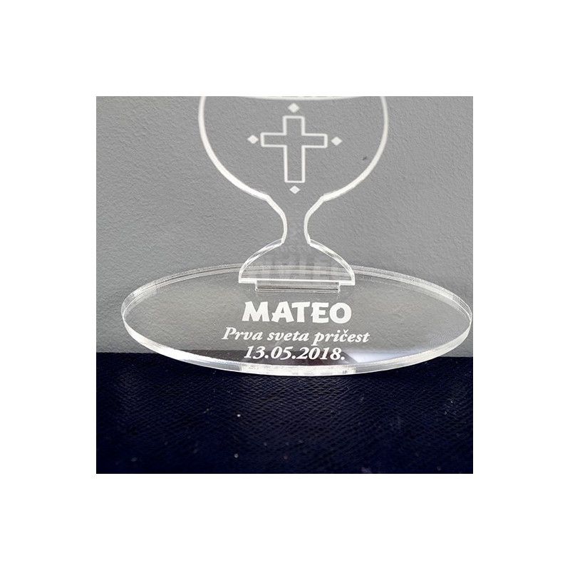 Plaketa Kalež od pleksiglasa, dimenzija 45x95 mm s postoljem 36x103 mm, idealna za personalizirane poklone.