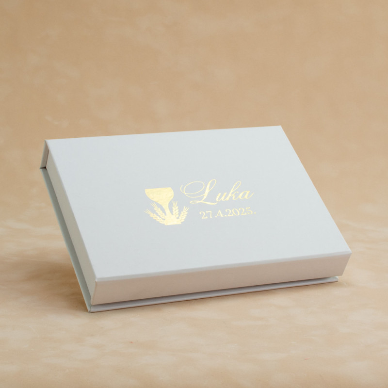 Dodatno u box možete odabrati i personaliziranu krunicu po izboru te ukrasnu traku i otisak na traci.