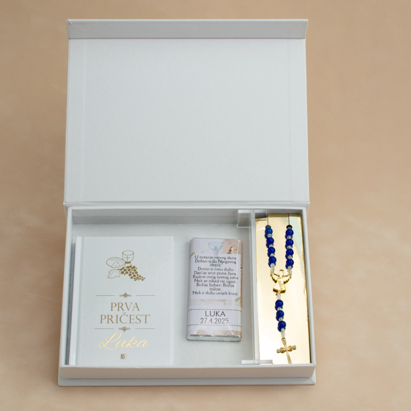 Naš Premium Poklon Box s molitvenikom predstavlja savršen dar za svečane prigode. Ovaj pažljivo odabrani set kombinira eleganciju i personalizaciju, pružajući jedinstveno iskustvo darivanja.