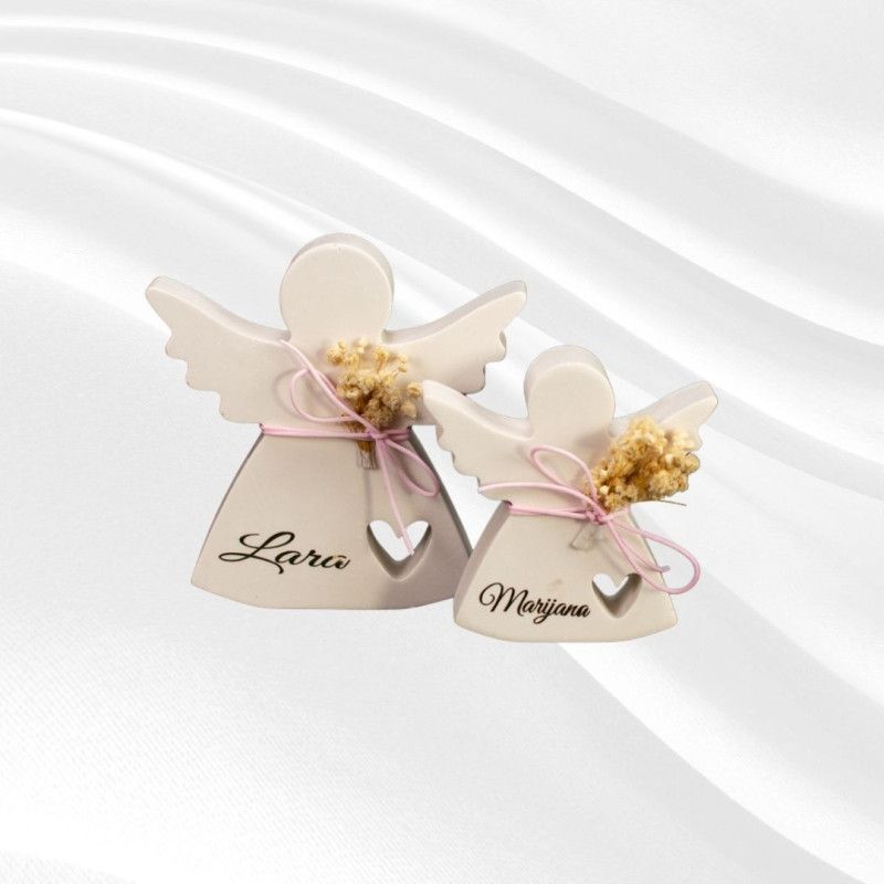 Naša kolekcija ručno rađenih anđela od jesmonita nudi jedinstvene i elegantne komade koji su savršeni za darivanje kumama i kumčadima. Jesmonit je inovativan materijal koji kombinira estetiku i funkcionalnost, pružajući dugovječnost i izdržljivost. Naši anđeli dolaze u dva veličinska formata: