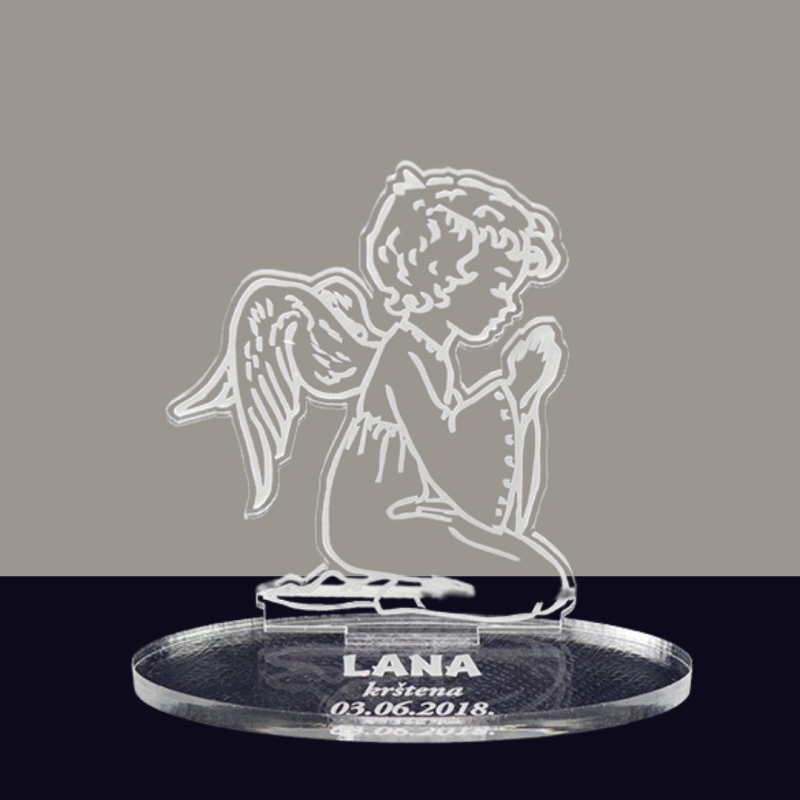 Plaketa Anđeo u molitvi s personaliziranim graviranjem prekrasan je i značajan dar za obilježavanje posebnih trenutaka u životu. Izrađena od visokokvalitetnog prozirnog pleksiglasa, ova elegantna dekoracija unosi duhovnost i ljepotu u svaki prostor.