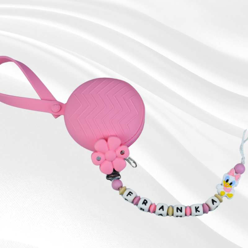 Vezica za dudu može se personalizirati imenom djeteta, čineći je jedinstvenim poklonom za mame i bebe. Ukoliko preferirate, vezica se može izraditi i bez imena. Estetski je dizajnirana tako da je moderna i trendi, dodajući poseban dodir svakodnevnoj upotrebi.