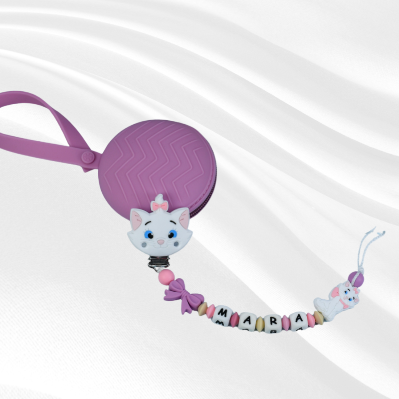 Estetski i moderno dizajnirana Blamar silikonska vezica za dudu s motivom Disney Mačka Marie savršen je poklon za mame i bebe. Personalizirana s imenom, sprječava gubitak dude i pomaže bebi u ublažavanju bolova pri nicanju zubića. Različiti oblici i boje potiču razvoj osjetilnih vještina. Sigurna i ručno izrađena prema EU normama.