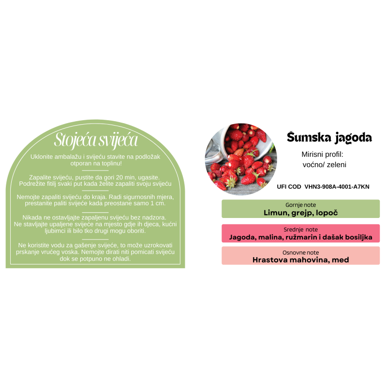 Jagoda svijeća box je idealna kolekcija za ljubitelje mirisa prirode i slatkih dekoracija. Svaka od devet svijeća u kutiji oblikovana je poput predivne jagode, u nijansama ružičaste i crvene, a njihova aroma podsjeća na svježe ubranu šumske jagode. Svijeće su izrađene od visokokvalitetnog sojinog voska, koji omogućuje čisto, ekološki prihvatljivo gorenje bez dima, uz time i duže vrijeme sagorijevanja.