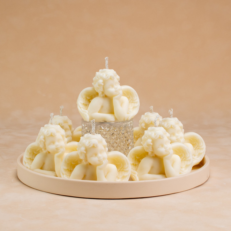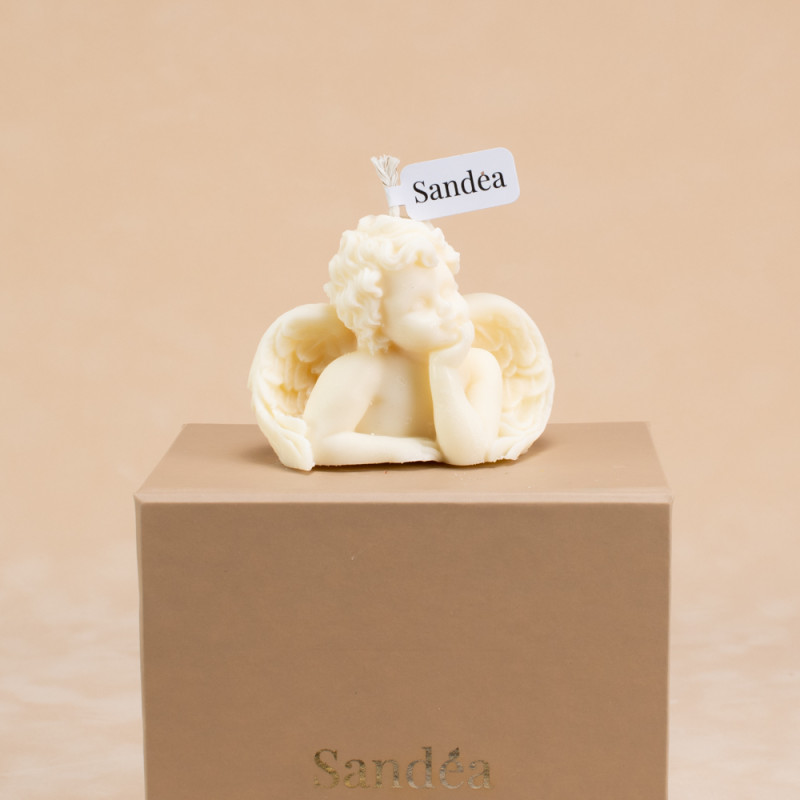 Svijeća u obliku anđela, ručno izrađena od 100 % sojinog voska, donosi mir i toplinu u vaš prostor.