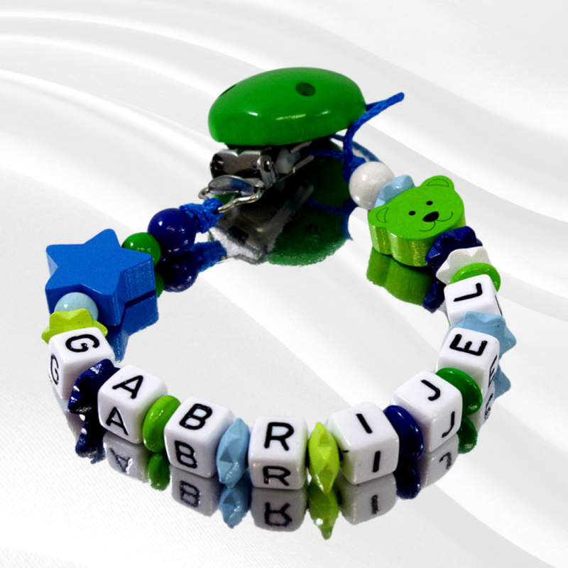 Naša vezica za dudu s motivom medvjedića pruža savršen spoj sigurnosti, funkcionalnosti i estetike. Ručno izrađena s pažnjom prema detaljima, omogućuje vam da odaberete savršenu kombinaciju boja okruglih i plosnatih perli, koje će se skladno uklopiti u stil vaše bebe. Boja kopče za vezicu također se prilagođava odabranim bojama perli, čime osiguravamo ujednačen i elegantan izgled.