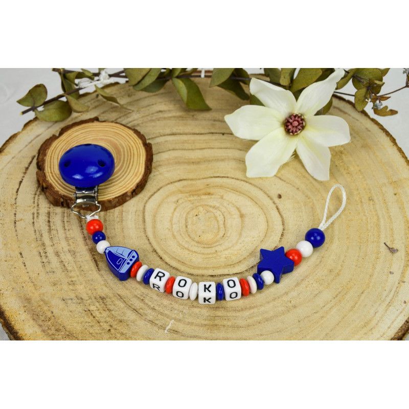 Personalizirani privjesak za dude, izrađen od visokokvalitetnih materijala, idealan je poklon za svaku bebu. Izrađujemo ga s imenom do 9 slova, od drvenih perli u bojama po izboru. U skladu s EU normama za sigurnost, ovaj privjesak je netoksičan, otporan na znoj i slinu, te bez štetnih tvari. Silikonski adapter dostupan za dude bez plastičnog prstena.