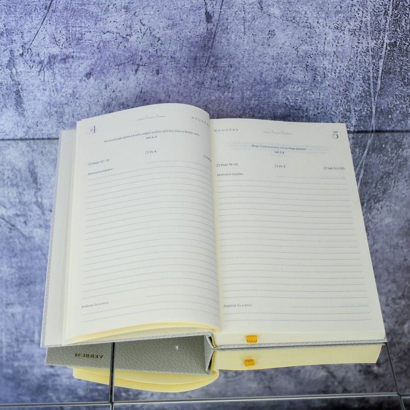 Fleksibilnost korištenja: Dnevnik nije vezan uz određenu godinu ili razdoblje. Pri vrhu svake stranice nalazi se prostor gdje sami upisujete dane u tjednu i datume, što znači da možete započeti koristiti dnevnik bilo kada. Pored svakog biblijskog čitanja nalazi se kvadratić gdje možete označiti da ste ga pročitali, omogućavajući vam da lako nastavite gdje ste stali ako prekinete čitanje.